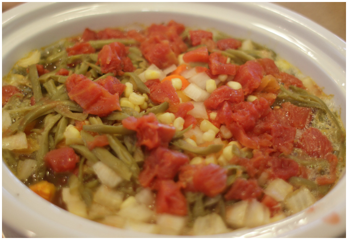 Add 1 cup green beans. I prefer canned French Style Green Beans.