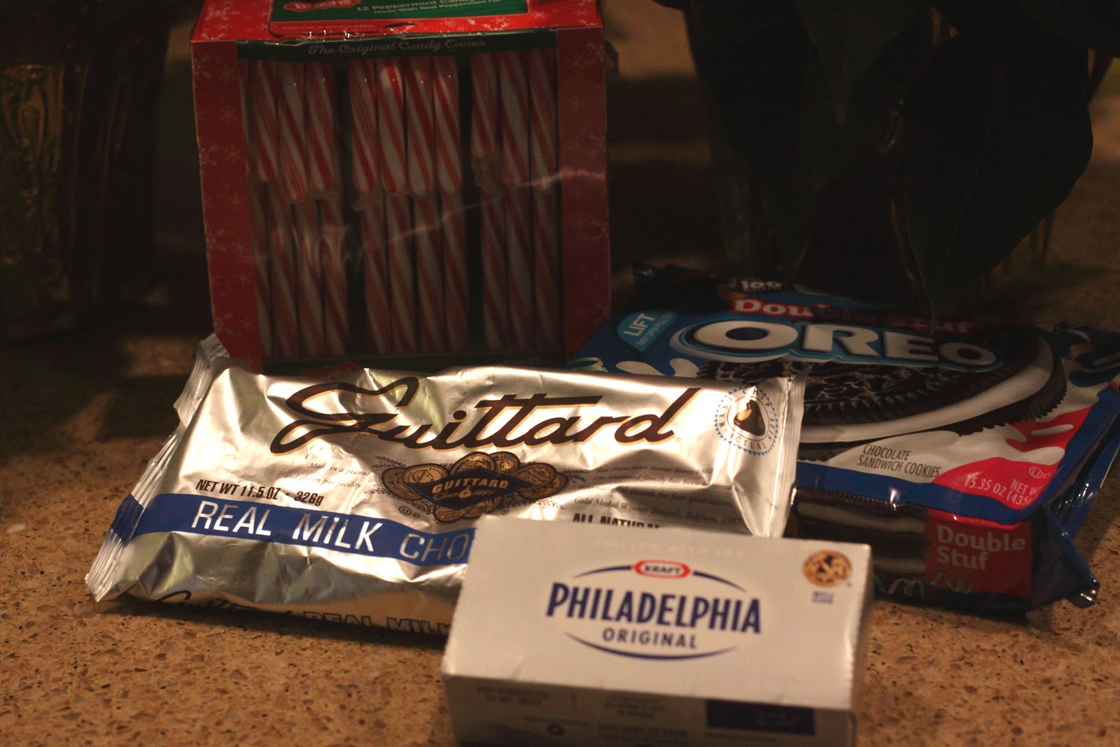 5. Add softened cream cheese, room temperature, to oreo/candy mixture.