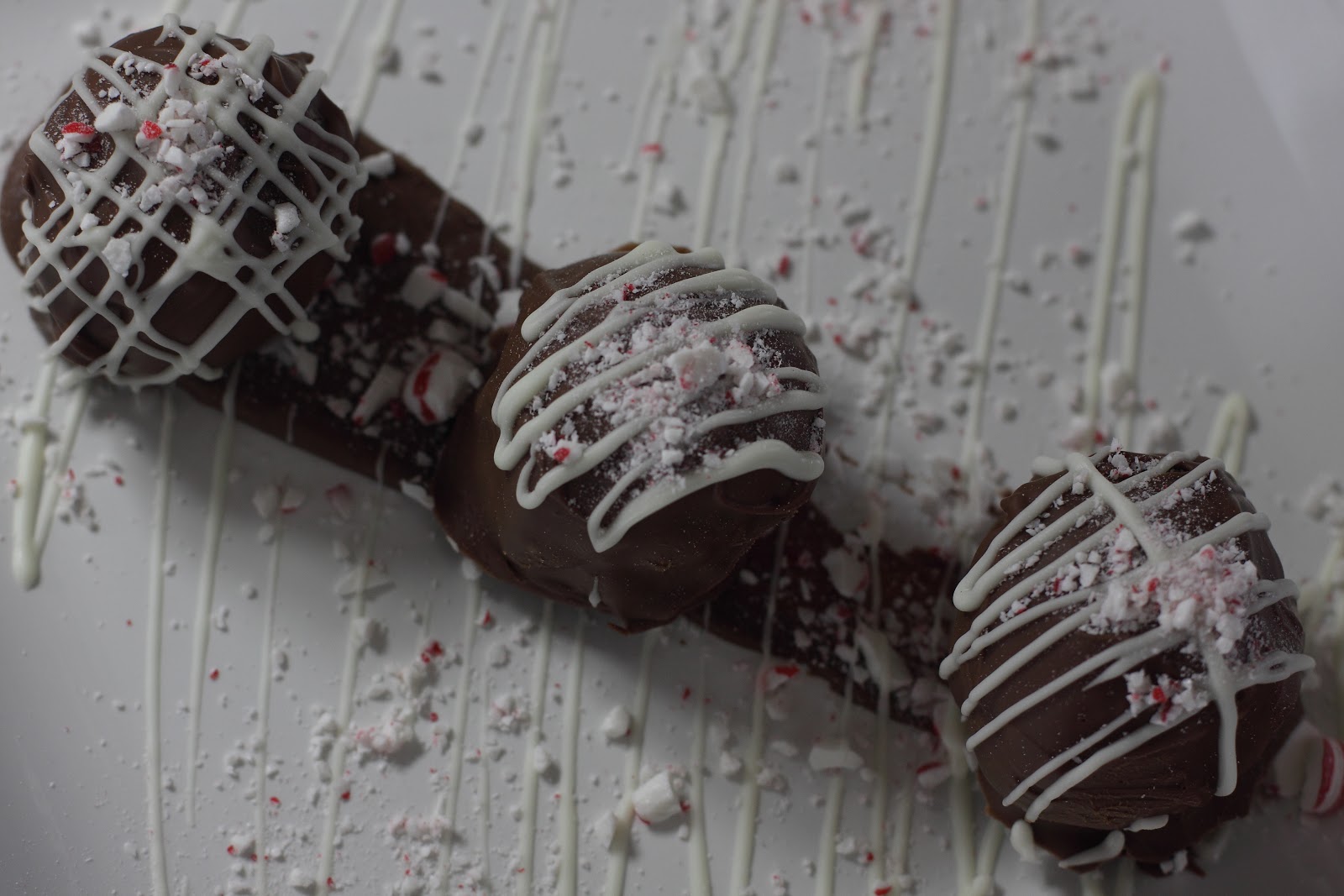 11. Little tip… Use a mustard or Ketchup bottle for perfect lines! I bought this at Walmart. 2 pack for $1.99! 🙂 After the white chocolate was melted, I spooned it into the mustard bottle and then decorated the top of the Peppermint Oreo Balls.