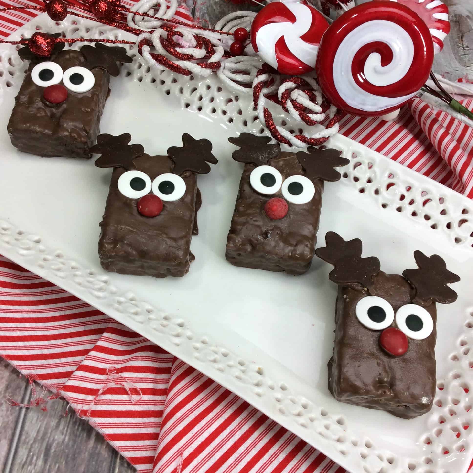 This Chocolate Covered Reindeer Krispy Rice treat is the perfect holiday treat.