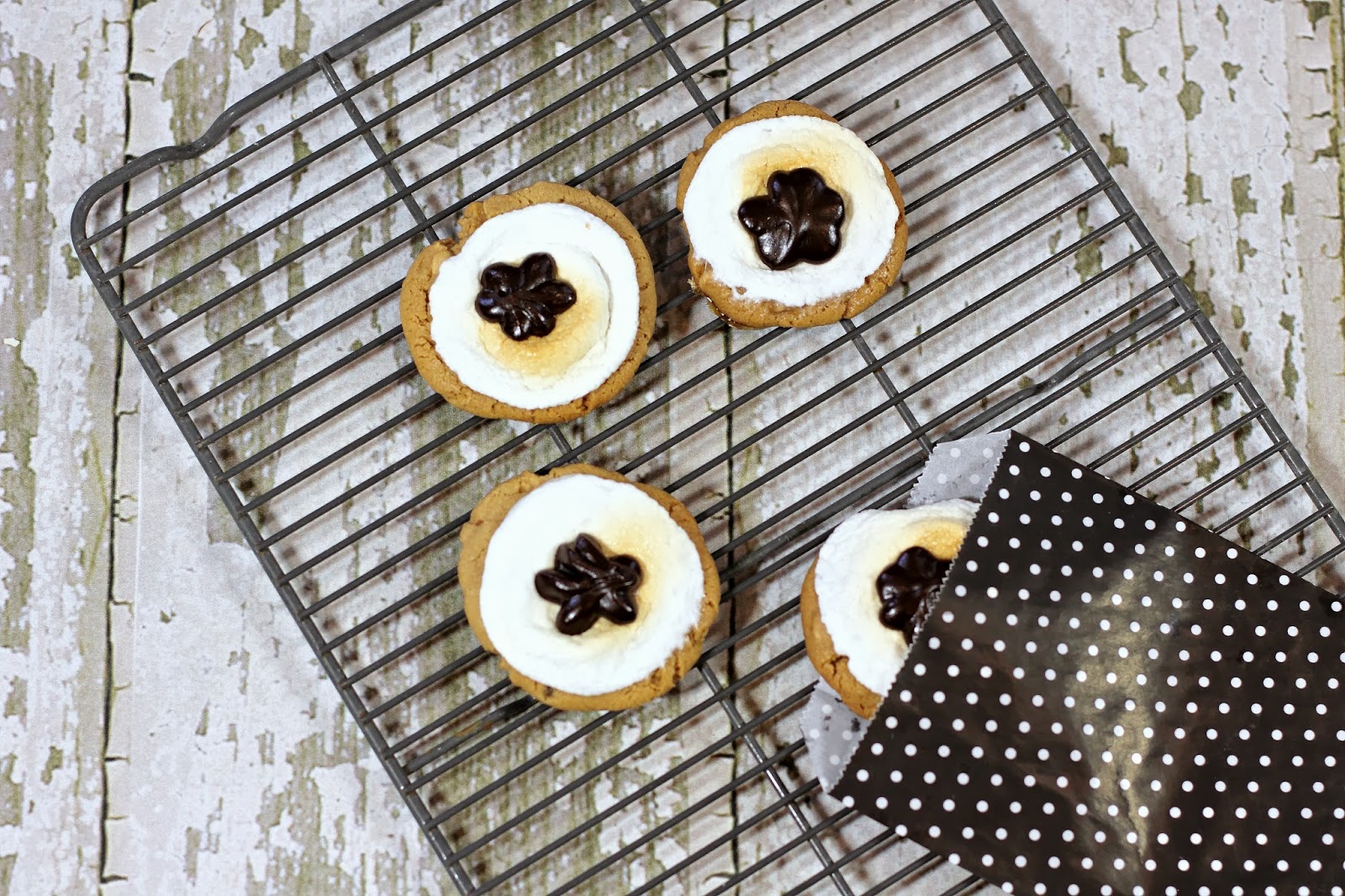 7. Pull cookies and put one marshmallow on top of each cookie and return to oven. Bake 4 more minutes or until marshmallow is toasted.